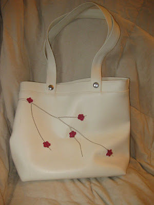 My latest addition to my collection of Queen Bee Creations bags. Queen Bee announced on their Facebook Page one day they had a few Penelope Bags to sell. I was looking for something with a long strap like a Truckette, but a smaller bag. The photo doesn't do justice to the rich red flowers.